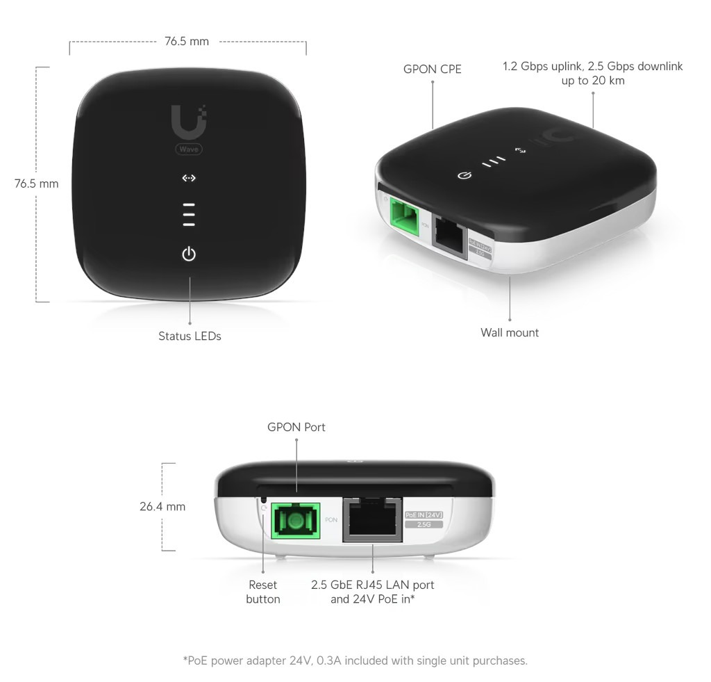 Ubiquiti WaveFiber ONU - GPON 2.5GbE LAN terminal - 20 pcs. (Wave-Fiber-ONU-20)