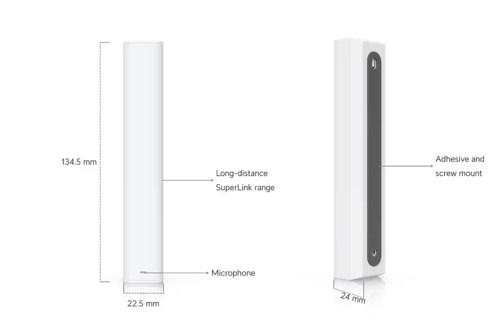 Ubiquiti Glass Break Sensor (USL-Glassbreak) to zasilany bateryjnie czujnik alarmowy, integrujący akustyczne wykrywanie zbicia szkła z pasywnym czujnikiem podczerwieni (PIR) do wykrywania ruchu. Urządzenie komunikuje się z siecią za pośrednictwem autorskiego protokołu SuperLink, pracującego w paśmie sub-GHz (865.1–869.5 MHz dla regionu EU). Wykorzystanie tej częstotliwości pozwala na osiągnięcie stabilnego zasięgu transmisji do 2 km w linii wzroku. Czyni to sensor optymalnym rozwiązaniem dla rozległych obiektów komercyjnych, hal magazynowych czy biurowców, w których standardowa infrastruktura bezprzewodowa Wi-Fi nie zapewnia odpowiedniego sygnału.