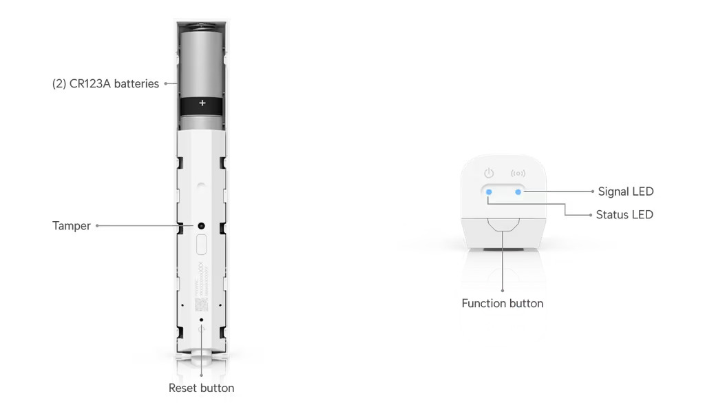 Dzięki optymalizacji poboru mocy (maksymalnie 0.2W), urządzenie jest w stanie pracować nieprzerwanie przez okres do 3 lat, wykorzystując dwie standardowe baterie litowe CR123A (3V). Poliwęglanowa obudowa pozwala na bezinwazyjny montaż ścienny lub narożny (przy użyciu dedykowanych adapterów z taśmą adhezyjną lub wkrętów). Sensor przystosowany jest do pracy w wewnątrz budynków, w temperaturach od 0°C do 40°C.